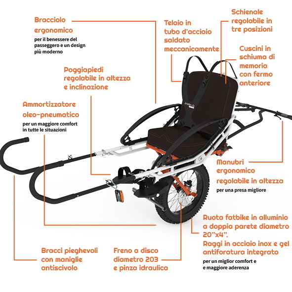 Scopri i componenti meticolosamente progettati che rendono unica ogni Avventura Joëlette; ideati per massima durabilità e comfort all'aria aperta.